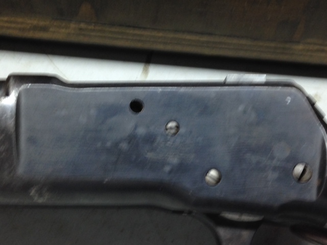 Si tienes problema en hacer coincidir el pasador de la palanca con el agujero del armazón para montarlo o desmontarlo, hazlo siempre con el martillo completamente abatido, es decir, como si se acabara de disparar, para que el propio martillo empuje el cerrojo hasta el fondo. De otra forma, la tensión de la uña extractora sobre todo, y la del muelle del eyector tenderá a retrasarlo unas décimas, desalineando armazón y cerrojo. Uno puede imaginarse que al estar los dos bloques del cierre en su carril, no se retrasará el cerrojo, pero siempre tienen algo de juego para que discurran por su carril correctamente, suficiente como para desalinear ambos agujeros.