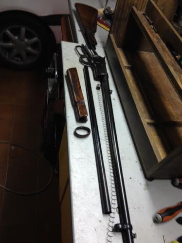 Con aceite de escopeta y nanas de aluminio le he quitado el poco oxido que teniahe limpiado bien las maderas y lo he vuelto a montar.