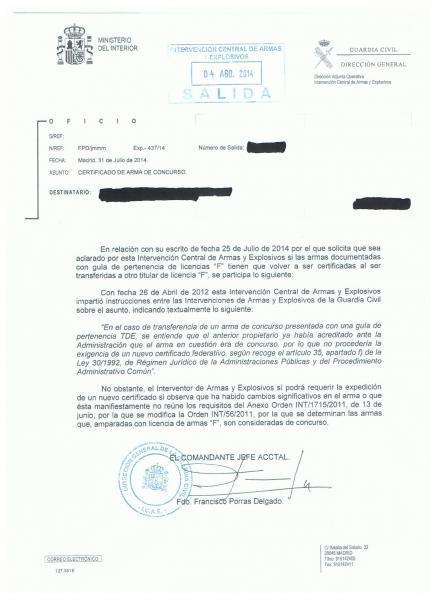En resumen, que quien lleva el control de las armas en España no deberia de hacerlo, pues desde mucho años atras siempre han querido que no tengamos armas, y las que nos dan, lo hacen poniendo trabas, absurdos, o denegaciones por una simple multa de trafico, porque repito, todo esto es porque no quieren que estemos armados. Y las que nos dan, Dios mio, con el celo que lo hacen.