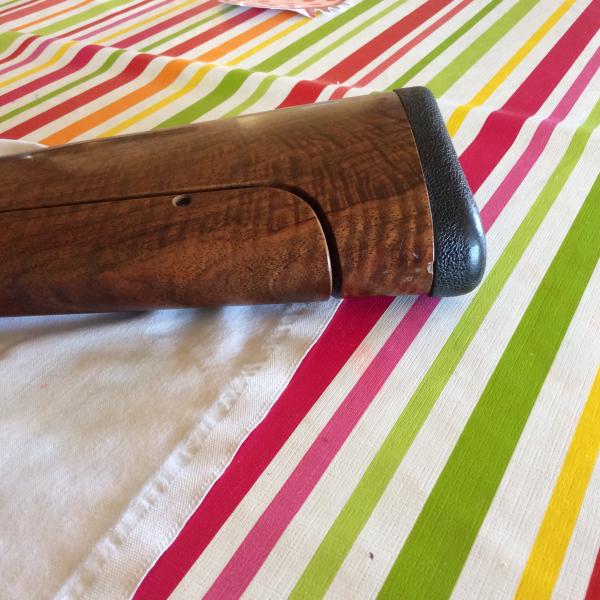 Lo de la recámara es obviamente aceite.. Al natural las maderas lucen mucho mejor.. La escopeta va con la caja original beretta.