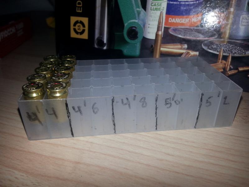 El método que yo uso para determinar el LTC máximo es el de la foto. Unos cortes cada 90º con una dremel a una vaina sin recalibrar (disparada por tu pistola) ligeramente abocardada, e introducirla en el cañón. Golpecitos con martillo de nylon hasta que no vaya más allá y quede en su sitio natural, y de hecho, habrá quedado tocando estría, que serán visibles en el proyectil. Luego es extraerla ayudándose de una baqueta de madera o plástico por la boca de fuego, con golpes suaves y tirando a la vez del culote si puedes, y tendrás una idea del LTC máximo para esa punta. También podrás ver cuanto proyectil queda insertado en la vaina. Yo, a la medida que obtengo, le resto como mínimo 0'7 mm para tener un margen de seguridad amplio.