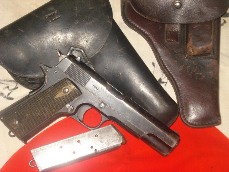 hola vendo esta magnifica pieza de coleccion,una colt konsgberg 1914,copia noruega de la colt 1911,de igual calidad que la colt,y mas cotizada que esta,la pistola lleva dos fundas originales,una alemana con marcajes y otra noruega,asi como un cargador original de epoca, pistola fabricada en 1941,con certificado de inutilizacion noruego,,,creo,todo el lote por 850€, tambien acepto militaria japonesa como parte de pago