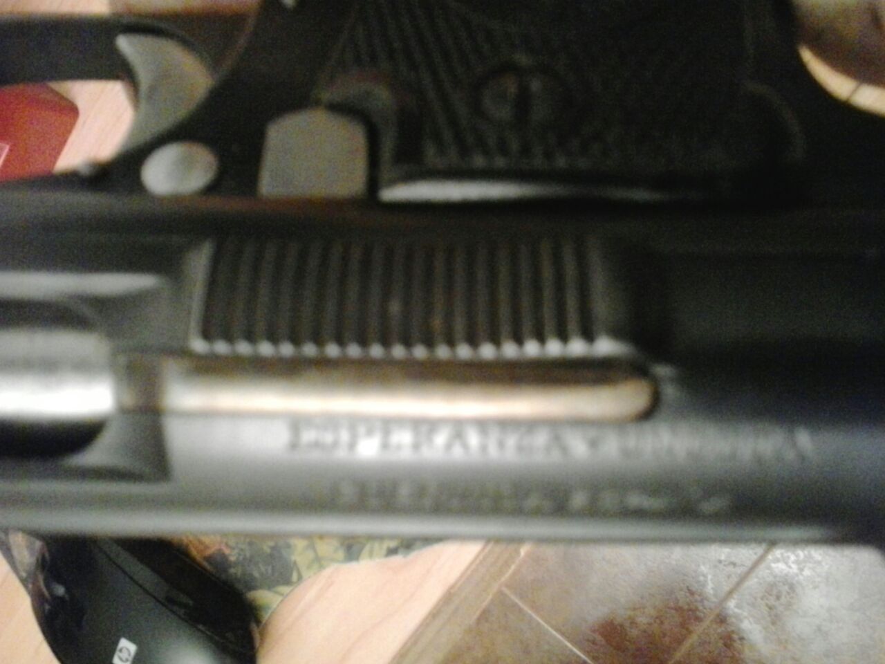 De paso, ¿podrías decirnos por favor cuáles son las leyendas que tiene la pistola en la parte superior de la corredera? Es para saber si son las habituales o son otras que presenten también alguna particularidad y que haga todavía más especial esta pistola..