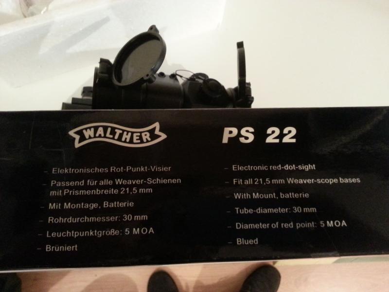 Visor Walther ps22 punto rojo con 11 intensidades, incluye monturas para rail weaver .