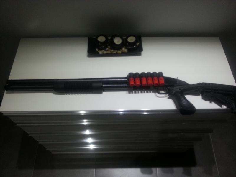 escopeta tactica corredera mossberg 500 7+1 en perfectísimo estado con culata retractil y carril weaber con grip (no aparece en las fotos) precio 750 euros un saludo