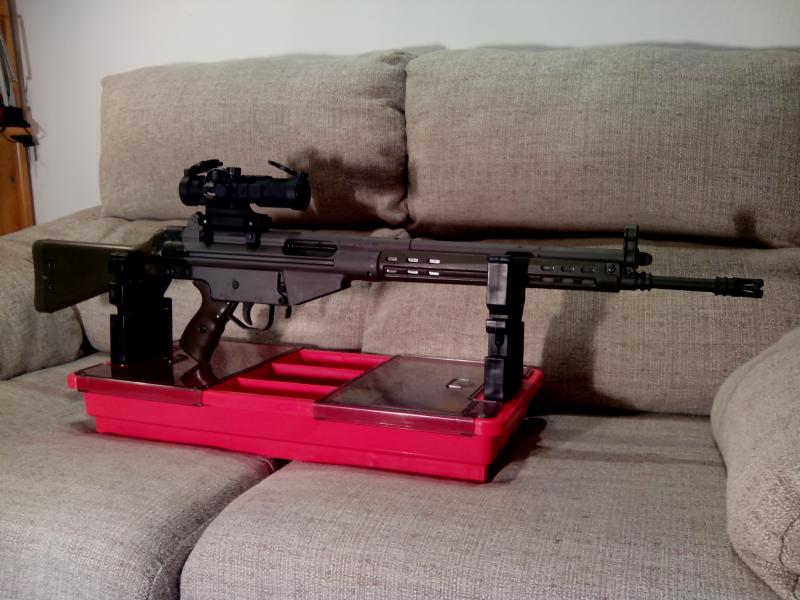 Está diseñado especialmente para el HK G3 / Cetme, así que... Además la montura y el visor por unos 250 a 400 Euros, según el modelo. Pero todos van bien.