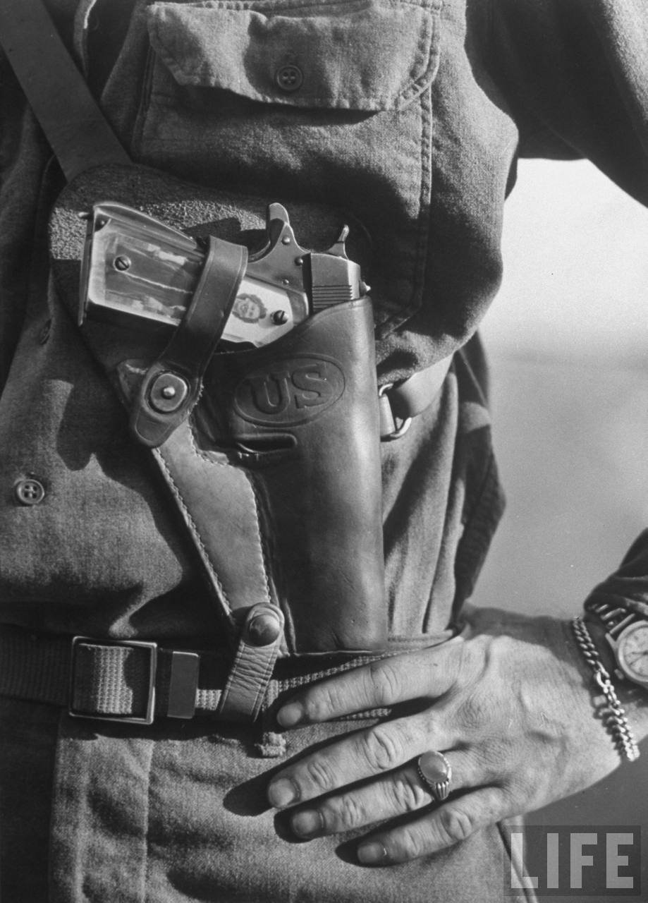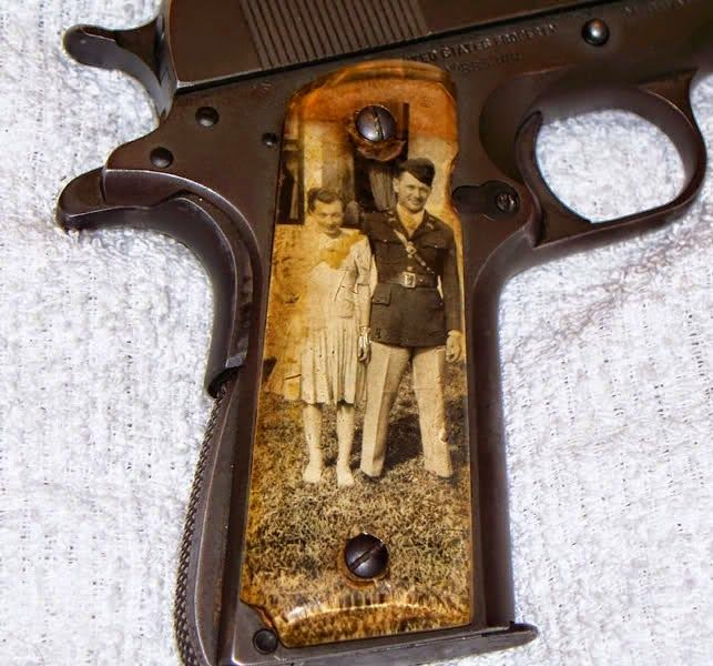 Efectivamente se trata de un S&W M1917, dotado de unas cachas personalizadas de plexiglás.Este tipo de cachas artesanales se popularizó en el ejército americano durante la II GM, siendo conocidas como "Sweetheart Grips". Se cree que el material para hacerlas procedía de las ventanas de aviones derribados que las tropas iban encontrando; debajo colocaban fotos familiares o de pin ups.