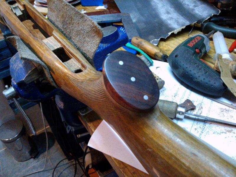 Por si te resulta de ayuda, decirte que yo tambien busque esos materiales, y puedes contactar con algunos vendedores, el problema es encontrar un taco que este limpio sin nudos ni defectos y de las dimensiones precisas. El precio tambien es bastante alto y mas para ser recortes de sierras o ebanistas. Al final lo que yo hice fue usar la madera que un amigo habia colocado en el suelo de su casa en tabla de unos 3,5cm de jatobá, es una madera preciosa y muy dura. Yo hice algun puntal y varias tapas para alargar pistolet, quedan con un buen contraste de color y la dureza se ve al meterle la escofina con el trabajo que da para rebajarla. Esta madera se usa para suelos y la puedes encontrar en almacenes de madera o de bricolaje, creo que en algunos te pueden vender una tablilla suelta y tendras para rato. Tienes otras que tambien se usan como tarima. Por ejemplo el iroko, otra de gran dureza.