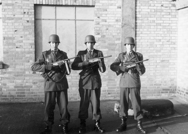 subfusil Sterling de 9mm parabellum en manos de un Policia militar Britanico en algun puesto de la Alemania de post guerra
