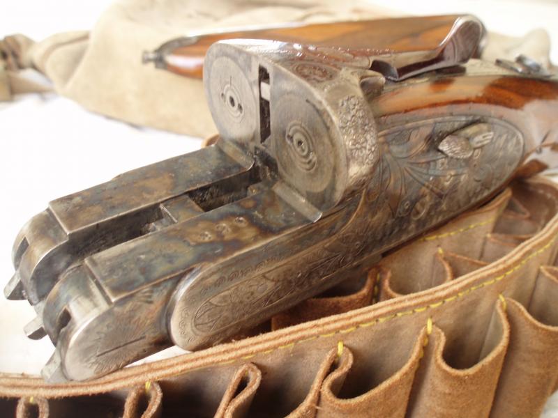 Calibre 12/70. Gatillo doble (articulado el primero), expulsores automáticos, válvulas expulsoras de gases, llavín para desmontaje de pletinas y cañones demibloc en excelente estado. Cierre triple. Choques de 1 y 3 estrellas, como es habitual en este tipo de escopetas. La solista es recta.