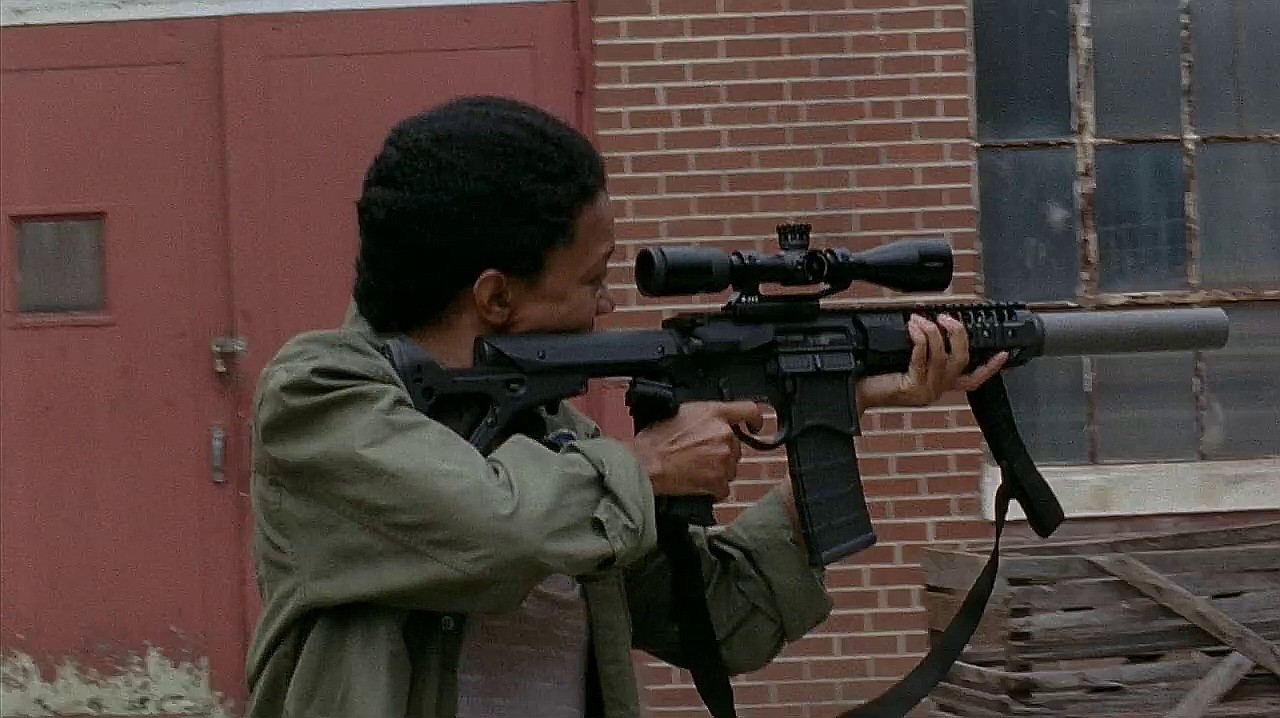 En el capítulo 14, en el momento en que el grupo entra en el almacén de respuestos eléctricos, nada mas entrar, es posible que "Tara" empuñe una pistola Star 30M, se ve poco y por escasos segundos pero parece una Star. Os dejo un fotograma, se observa bastante mejor viendo el clip de película durante la entrada al almacén.