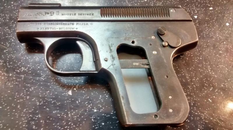 Un compañero me pide que le ponga a la venta estas dos joyas, la primera es una brgman bayard 1908, calibre 9 corto o 380, le faltan las cachas pero se pueden hacer fácilmente unas de madera, esta en un estado fabuloso y tiene dos cargadores.