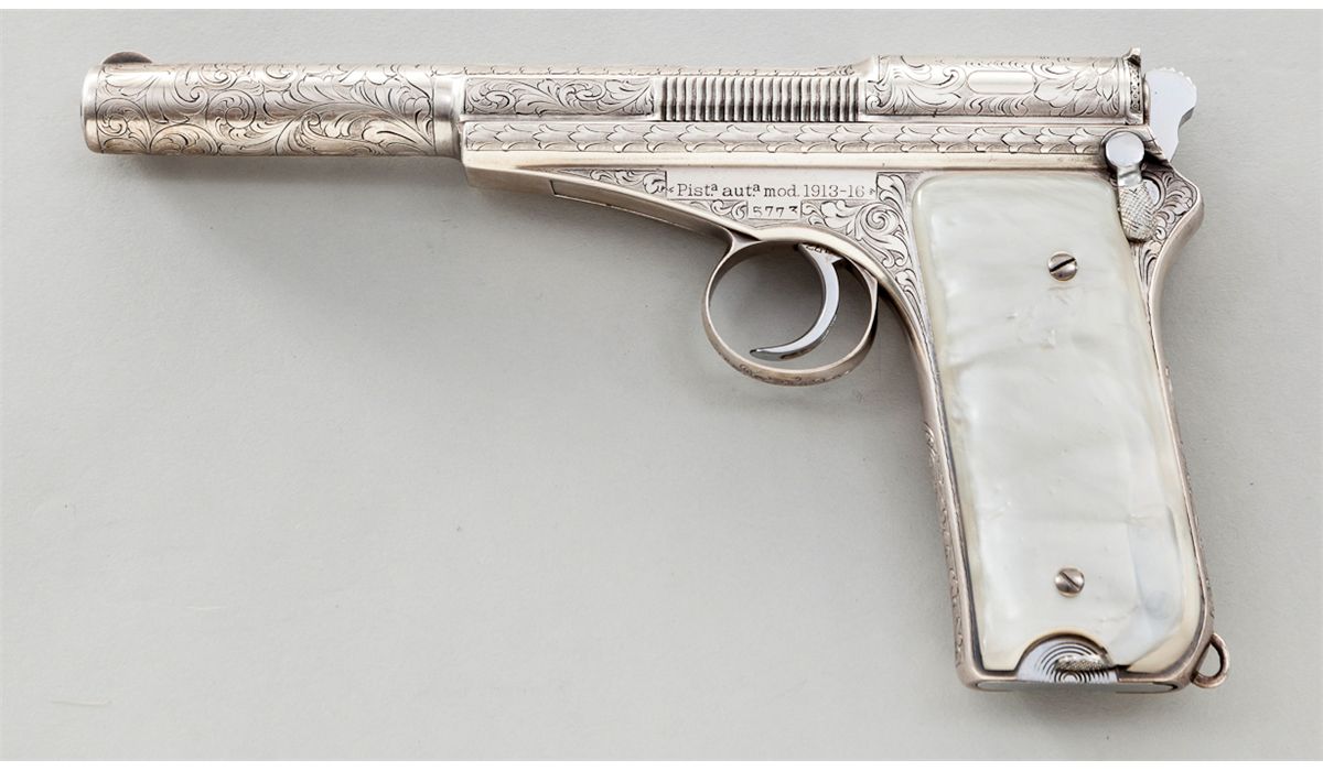 Encontradas aquí:  http://www.icollector.com/Eng-d-Sil-Pltd-Campo-Giro-M-1913-16-Pistol_i15298132 01