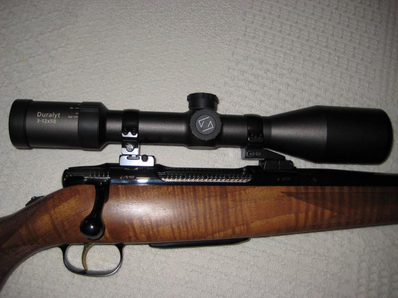 lo tengo con un visor swaroski habicht 1.5-6x42 con anillas apel . Normalmente a ese calibre se le suelen poner visores de pocos aumentos máximo 10 , ya que se suele usar en tiros no muy largos , eso si ponle un visor y unas anillas que aguanten el taponazo que da el calibre .