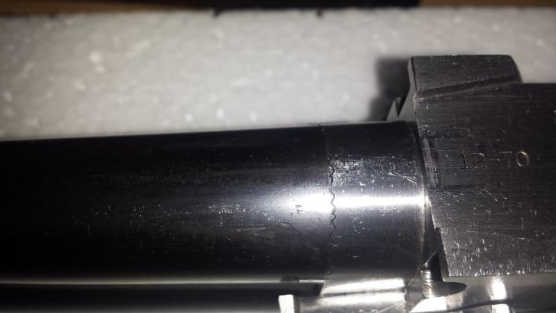 Investigando en el tema tiene su explicacion logica,pues es la parte del cañon,junto con la delantera metalica del guardamanos,donde roza la bascula al hacer bisagra,y bascular los cañones al abrir la escopeta,a si que no os asusteis que es normal,y signo de buen ajuste,si no hiciera el roce es cuando tendria holguras.