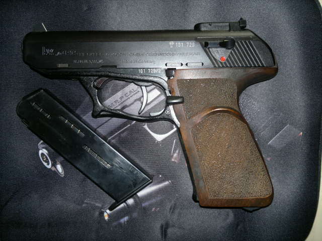 Un amigo se desprendo de su HK p9s, calibre 9mm PB. El estado es superlativo, viene con alza micrométrica, cachas de madera originales y un cargador.
