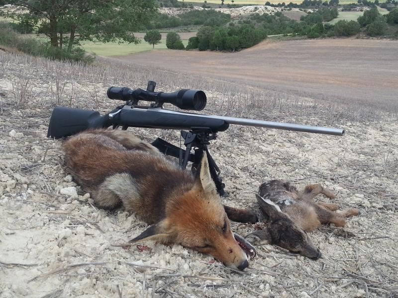 Me encontraba prismatiqueando y veo muuuy lejos una hembra de corzo con un corcino detrás en una beza intentando salvar una zanja. De las hierbas surgió el raposo y enganchandolo de los cuartos traseros se lo robó a su madre. A unos 20-30 metros lo mordisqueo y lo mató. Comenzó a trotar con él en la boca más pendiente de lo que dejaba detrás que de lo que le aguardaba delante. Intuí su trayectoria y corrí para aguardarlo en una cañada. Venía derechito a mí. Subitamente se quedó petrificado mirándome con expresión de "la he cagado. ¿Que hace este tio aqui?". Su mirada se cruzó con la mia. Fue su último recuerdo. La bala le entró por la boca y le salió por el ano