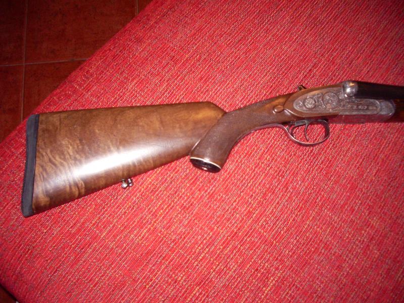 No se si saldrán las fotos. Esta es una de mis escopetas que tenia la culata rota y le hice esa culata si te fijas está un poco torcida hacia le derecha por que yo soy diestro, y tiene un encare extraordinario.