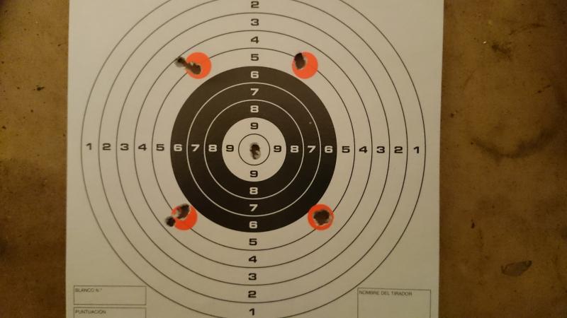 Bueno os cuento despues de retocar un poco mas la cfr este finde la probe y aqui os pongo unas dianas a 30 m. En cada diana hay 5 tiros por agrupacion y apollado en saco.