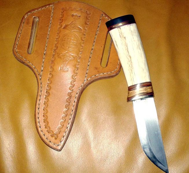 Enhorabuena por la pieza, es una autentica belleza. Me encanta esa funda, ceñida en el cinturon tiene que quedar de lujo. Yo soy un enamorado de los pukko, tengo unos cuantos y son autenticos comedores de madera. El que muestras me gusta mucho por la empuñadura de cuerna de ciervo. Que lo disfrutes.