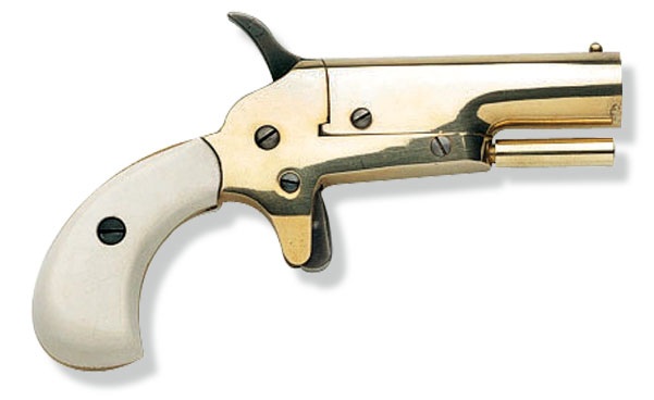 Es la DERRINGER POCKET calibre 31 esa dorada con cachas blancas de la marca ARDESA