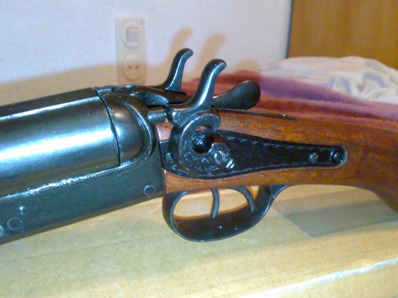 Después se le ha redondeado, teñido y barnizado de nuevo la chimaza y se le ha pavonado el zamak de la boca de fuego para que vuelva a ser negro. En la foto se vé de un tono gris pero es el brillo del aceite.
