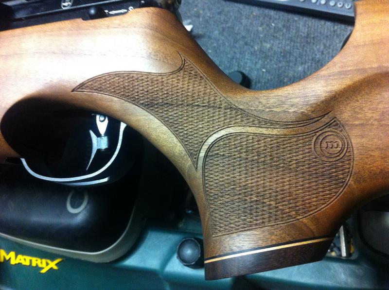 y mas fotos , como podeis observar este nuevo modelo , o mejor dicho este modelo con este nuevo calibre , el cañon carece del sound barrel , viene con el cañon visto totalmente flotante , y dotado de un moderador original bsa que cumple su funcion perfectamente el cañon lleva la rosca standart