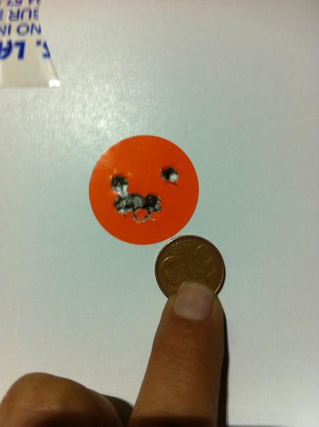y unas fotos de unos grupos realizados con esta carabina a 50 metros , tal cual viene de casa , nada se ha tocado , el visor un Arcea de 32 aumentos mildot, el apoyo el de siempre un cadwel matrix y la municion Jsb King,