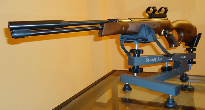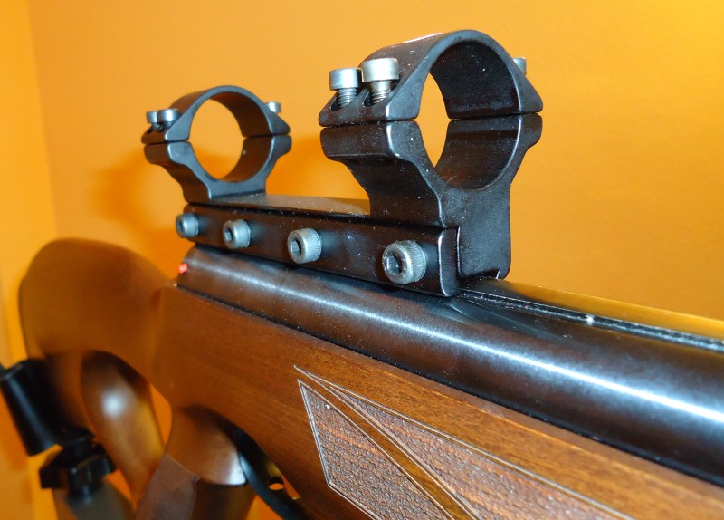 En las fotos aparece un banco de tiro y un visor KonusPro M30 10-40x52 sólo para que se aprecie cómo queda puesto en la carabina, con las monturas Sportsmach. No entran en la venta el banco y el visor.