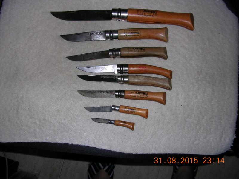 Mira, algunas de mis Opinel, tengo 4 o 5 más por algún sitio, las dos que están solas son inoxidables.
