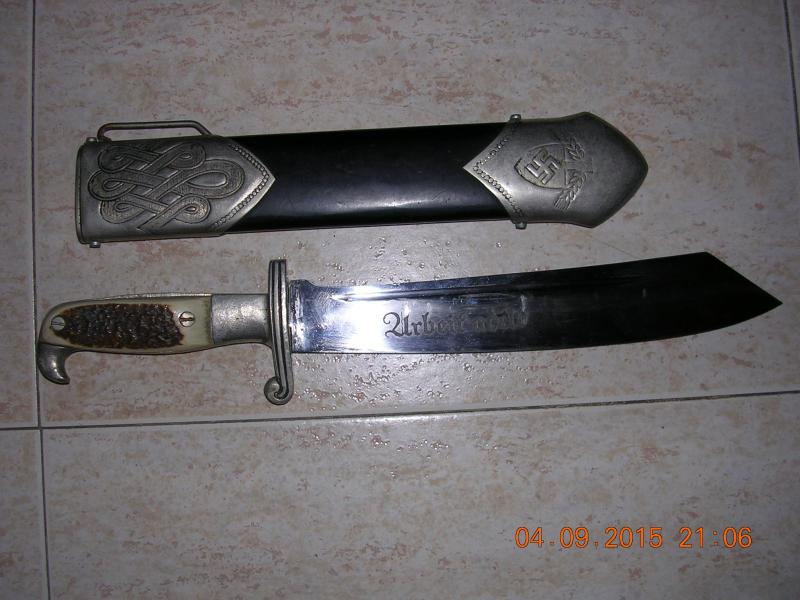 Cuchillos de las Unidades de trabajo de la R.A.D., este en concreto se le regaló a uno de los vigilantes de esos campos con motivo de su jubilación, como veis lleva una dedicatoria.