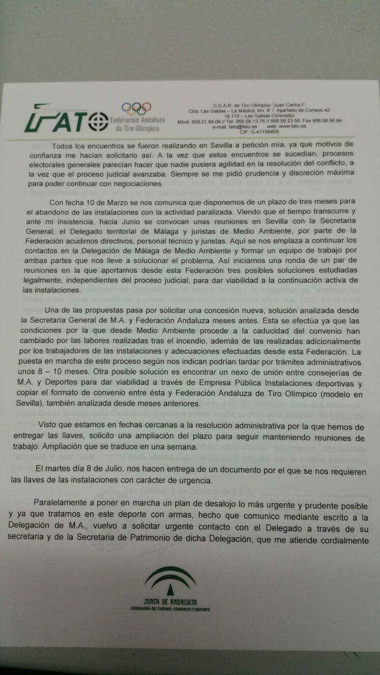 Desde aquí haceros un llamamiento para que firméis contra el cierre de este campo de tiro, porque lo que han hecho hoy en Málaga no es más que una excusa para cerrar el campo de tiro y limitarnos más este deporte.