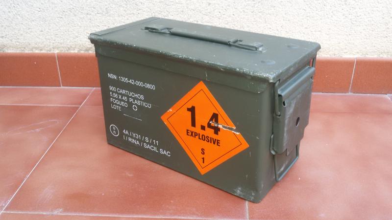 Caja metálica de munición, ideal para guardar tu munición o cualquier cosa, también para decorar, totalmente estanca sus medidas son: ancho 15, 30 largo, 19 de alto y otra caja un poco mas pequeña de medidas 7,5x30x18 estas cajas antes llevaban munición del 7,56x56 , se encuentran en gandia pequeña 10 euros grande 18 euros. tlf 653 560 368