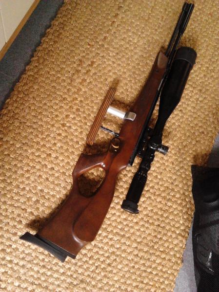 Calibre 4.5/.177 incluida una seta artesanal, un poco rustica pero funcional que no modifica para nada la culata.
