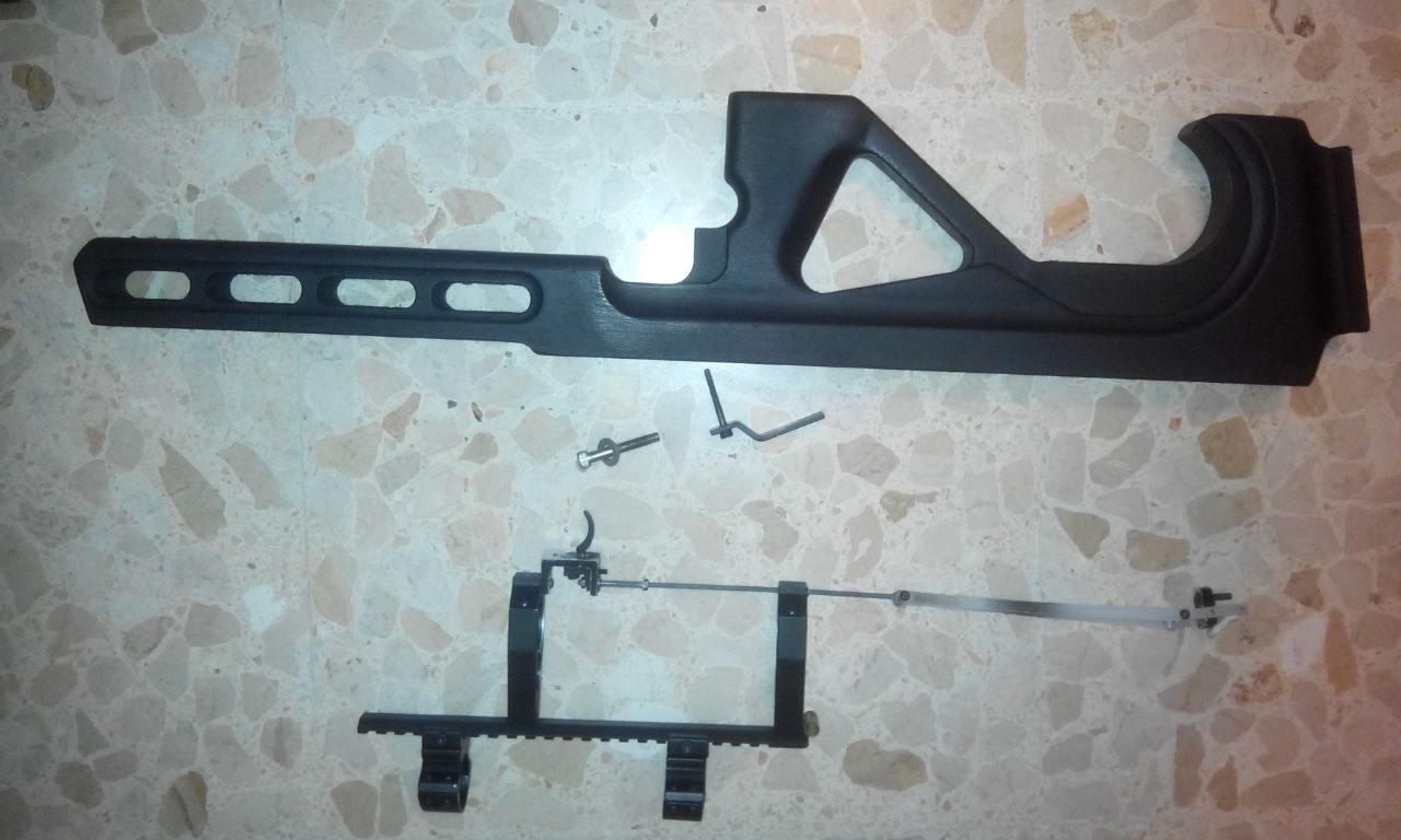 Hola compaňeros , pues lo dicho vendo culata y sistema bullpup para air arms s400 , s410 , s500 y s510 , esta fabricado por rapid 70 , regalo unas monturas de 30 mm , la culata esta pintada en negro mate , y tiene dos agujeritos de haber puesto un bipode . Precio 160 euros mas 12 de portes . Saludos. Ismael . Pongo unas fotos.