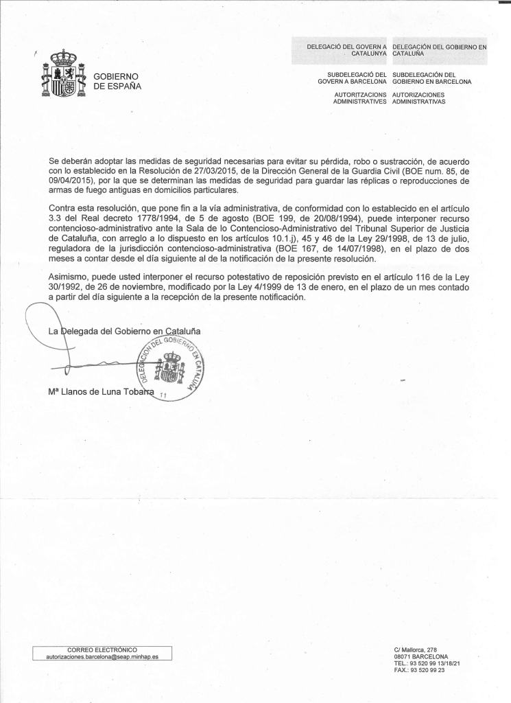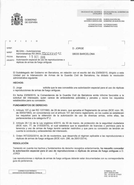 Chinchu escribió:Solicitud del Permiso de Coleccionista de Reproduccioes y Réplicas. Concedido al mes y medio