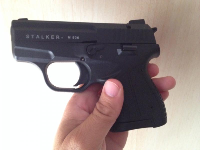 esta pistola es como la Zoraki m906 pero bajo la firma Stalker," for kolter". El calibre equivale a un 22 short( en la recámara entra un cartucho real). La obstrucción es FIJA (NO a rosca). Ha pegado un tiro nada mas y en el precio va incluido una caja de 100 cartuchos ( ahora 99). Se encuentra en Tarragona por 195 euros sin portes.