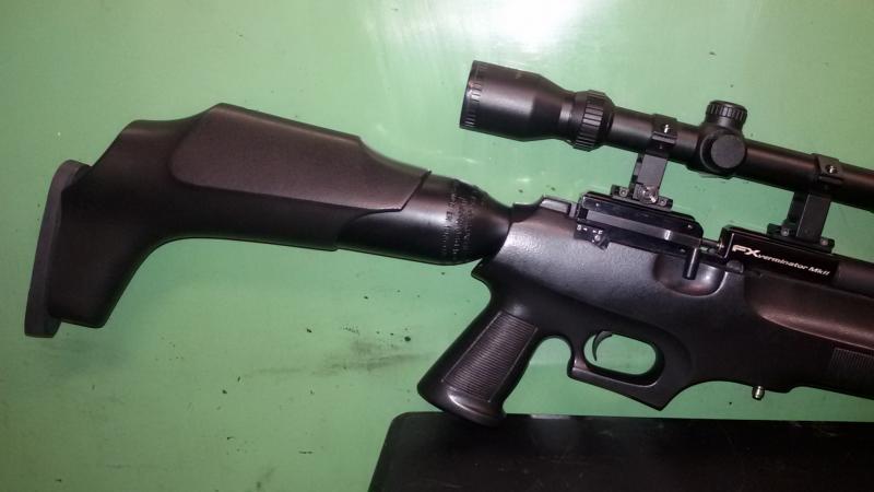 lleva montado un regulador original Fx de la royale gracias a lo cual saca unos 180 disparos, para montarlo hubo que cambiar el tubo que lleva el aire del deposito trasero a la carabina y cambiar de posición el manómetro y el conector de llenado, no se ha realizado ninguna modificación irreversible, así que se puede devolver a origen poniendo las piezas originales que van en la cajita amarilla.