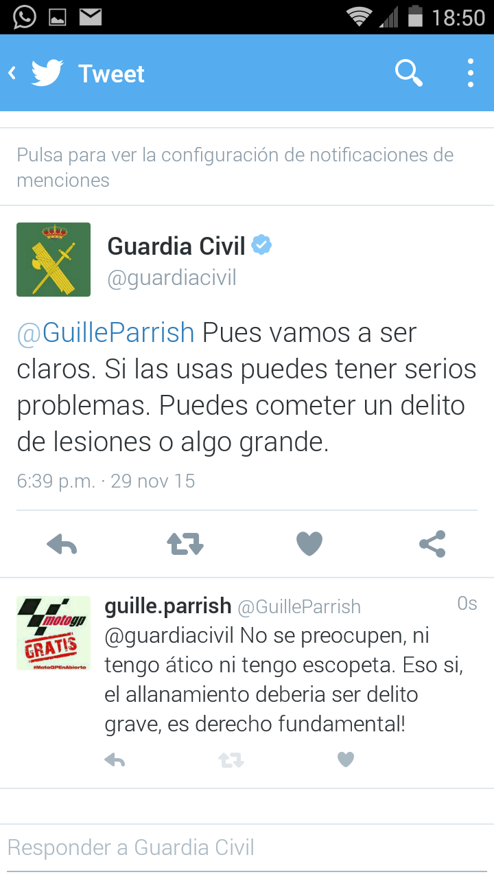Pues me viene al pelo estas fotos de la conversacion que he tenido hoy con la GC via tweter