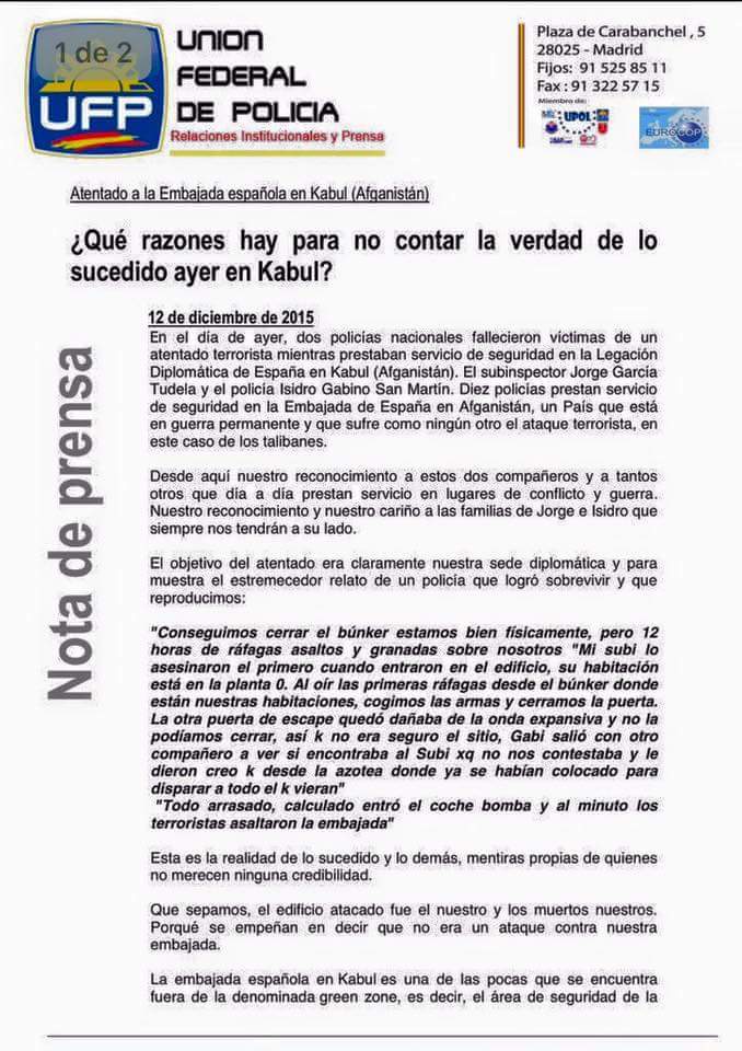 Re: Atentado en Kabul. 2 policías españoles fallecidos.