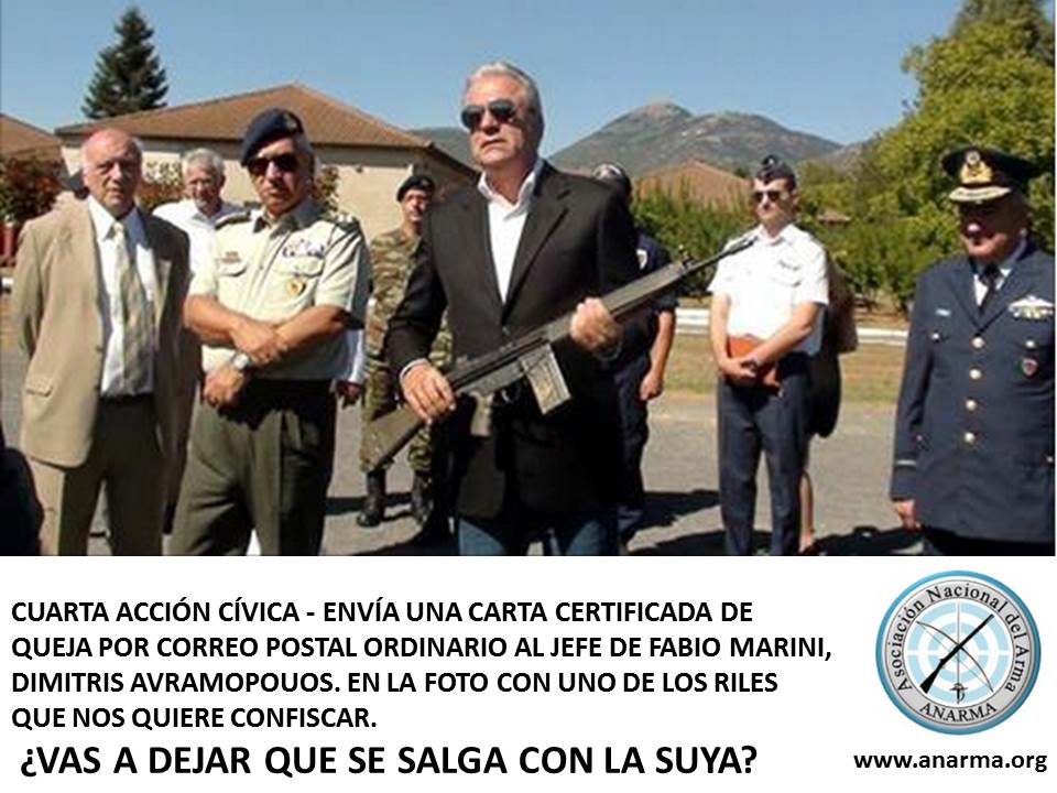 CUARTA ACCIÓN CÍVICA CONTRA MODIFICACIÓN DE LA DIRECTIVA EUROPEA SOBRE ARMAS CEE 91/477 – CARTAS POR CORREO ORDINARIO AL COMISARIO DE INTERIOR (DG HOME) DE LA COMISIÓN EUROPEA