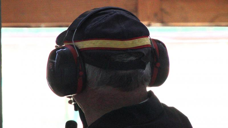 Una pregunta, en una de las fotos hay una femina apoyando la pistola en una especie de gancho y a su lado hay una media luna de alambre sujetando lo que parecen unos tapaojos.