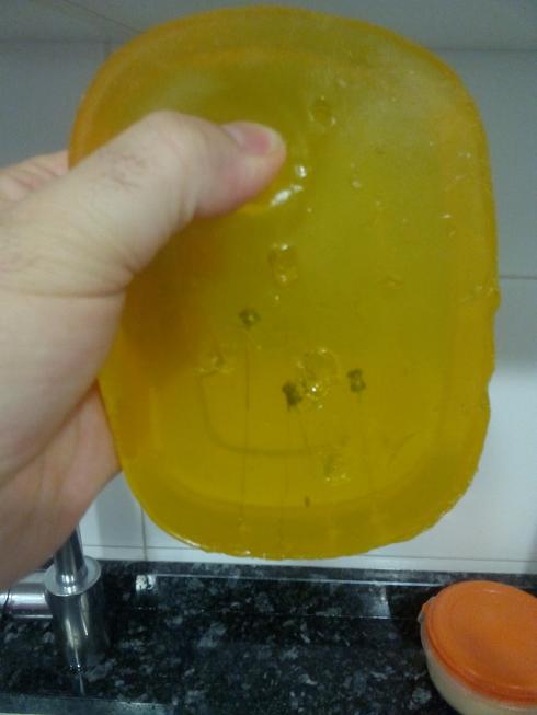 Opinión: La mezcla que preparo sale al 50% aprox., y como dije el otro día, creo que no es todo lo consistente que debería. Hice una prueba le otro día con una mezcla al 100% con la carabina (ver foto siguiente) y si que empieza a ser un bloque más decente. La pega es que ya te vas al doble de pasta y que probablemente acabéis con el suministro de gelatina de tu ciudad, :mrgreen: :mrgreen: :mrgreen: