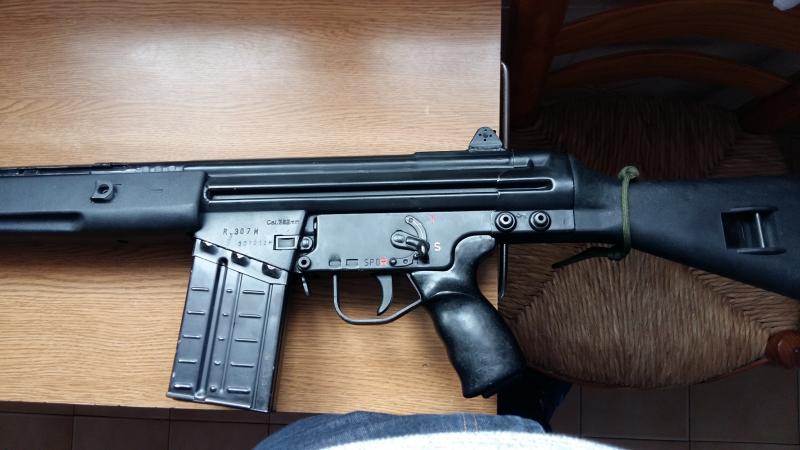 Como veis este cetme se ha modificado para tomar la apariencia del HK G3 mas moderno, la modificacion es reversible, no se ha tocado para nada el cajon de mecanismos y todas estas piezas son de quita y pon, el precio son 650€, gastos de envio aparte. El arma esta guiada en A por lo que los tramites de transferencia tardarian sobre un mes. Un saludo y a vuestra disposicion.