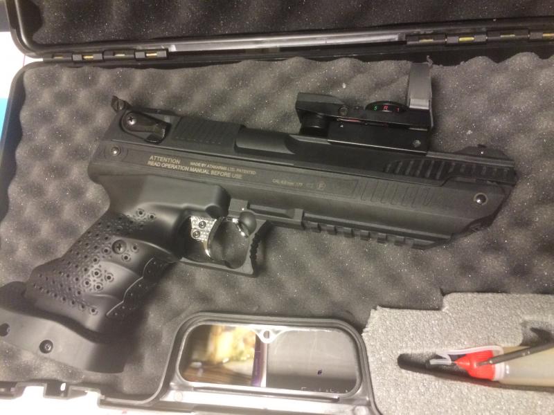 Tuve que quitarle la espuma interior original que venia cajeada a la forma de la pistola, para que me cupiera con el holografico, le puse yo espuma nueva respetando el hueco donde trae las llaves para soltar el tapon del cañon (para silenciador), aceitera etc.