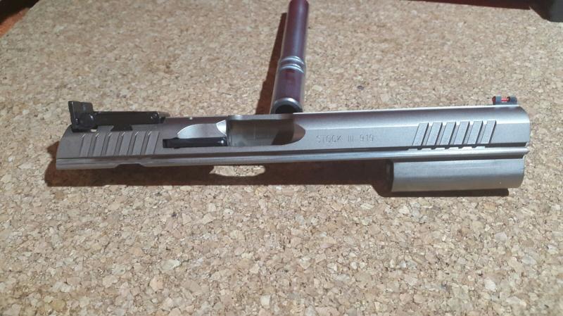 Es una pistola semiautomática de la marca Tanfoglio modela Stock III serie especial Niquelada, calibre 9mm y con una serie de mejoras como son, guía Xtreme, muelles Xtreme, martillo Xtreme, aleta de seguro sobredimensionada y punto de fibra en este caso de color rojo, todo ello montado por armero oficial Tanfoglio y por supuesto con su caja de transporte original. El arma ha sido comprada en Armeria en Julio de este año 2015 y se tiene factura para poder mantener la garantía. Esta arma ha sido utilizada para hacer precisión hasta este mes de octubre que ha comenzado a realizar el curso de IPSC, por cosas de la visa ha tenido la oportunidad de hacerse con una STI y después de probarla en la modalidad de Estándar quiere centrarse en ella por lo que quiere prescindir de la de producción. Esta impecable como podréis ver en las fotográficas que adjunto. Se tienen todas las piezas originales que por supuesto se adjuntaran al envío a modo de repuestos, también se mandan 5 cargadores que son 2 ms de los que vienen de la casa. El precio que pide son 1.200,00€ mas los gastos de envío para el comprador. La factura original es de 1.600,00€ a los que habría que añadir las piezas de competición ya montadas mas los 2 cargadores, que el precio es mas que razonable.