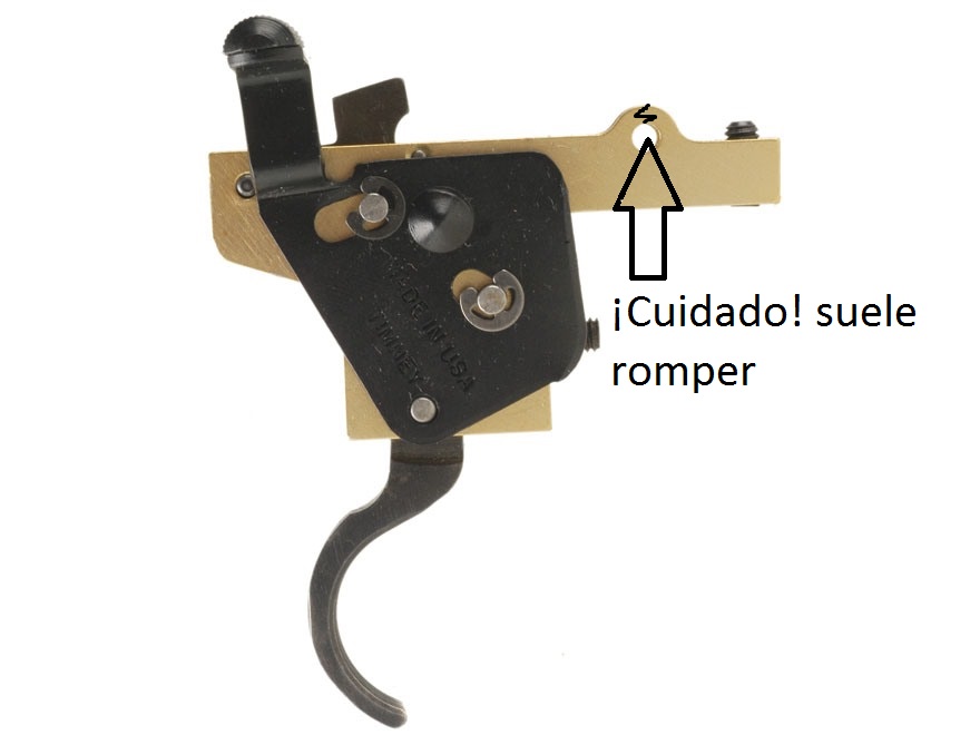 Un consejo con los Timney (si se me permite): sus armazones son de aluminio y tiene varios puntos críticos susceptibles de rotura. El más propenso es el alojamiento del pasador que lo une a la acción del rifle. Cuidado con los aprietes y las "leyes de la palanca". Para aminorar la tensión que sufre el armazón en ese punto, yo preparé un pasador especial un poco más largo y con roscas a ambos lados donde disponer dos tuerquecitas, que junto con su arandela, distribuyen la presión aplicada sobre tan endeble material.