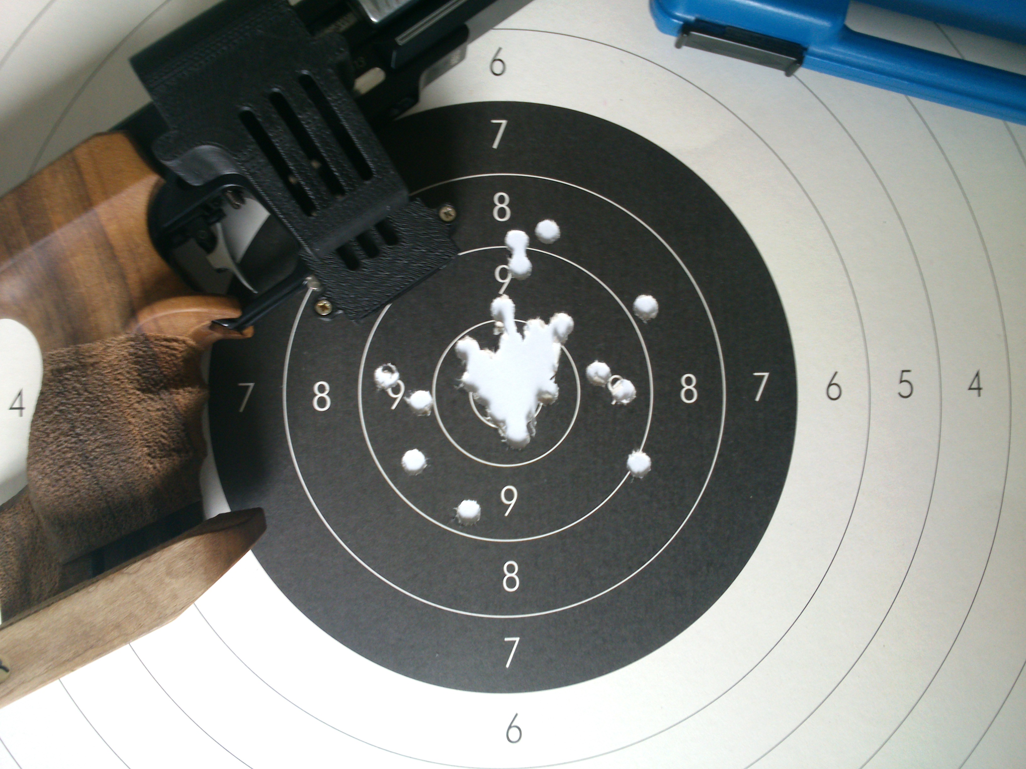 Después de pegar el tiro, vi el agujero en ese sitio y me dio rabia,porque a falta de 10s que parece que los esquivo,es una diana decente y sólo estaba al lado mi padre,disparando con su beretta del 9pb