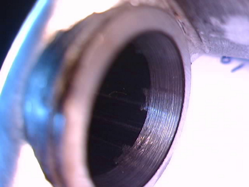 "Una imagen vale más que mil palabras"... Mirando a través del cañón, no se aprecia ninguna marca, todo brillante, como un espejo, pero mirando el estriado desde un cierto ángulo, se empiezan a ver estas cosas...