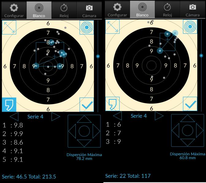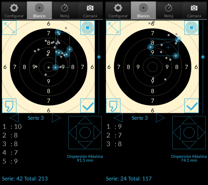 Si la pistola está en condiciones normales de fábrica, no te deberías salir del 10 en el blanco de 50x50 a 25 metros.